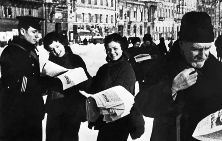 Người dân Leningrad đọc số báo "Pravda" (Sự thật) đăng tin phá vỡ vòng vây Leningrad.