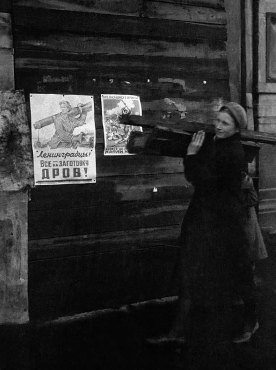 Các cư dân thành phố Leningrad bị bao vây rời bỏ những ngôi nhà bị phá hủy do các đợt