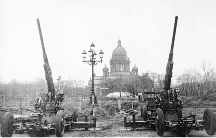 Việc giải phóng Shlisselburg ngày 18 tháng 1 năm 1943 đã trở thành kết quả chính của chiến dịch tấn công "Tia lửa" do quân đội Xô-viết tiến hành. Lực lượng tham gia là Phương diện quân Leningrad và Phương diện quân Volkhov, đạt bước nhảy vọt là vỡ vòng vây Leningrad. Ảnh chụp kíp chiến đấu của súng phòng không M4 (hệ thống Maxim) của Liên Xô trên thùng xe tải GAZ-AA đang quan sát trong thành phố Shlisselburg vừa được giải phóng. Bên trái là Nhà thờ Thánh Truyền tin Blagoveshchensky bị phá huỷ. © Sputnik / Alexander Brodsky