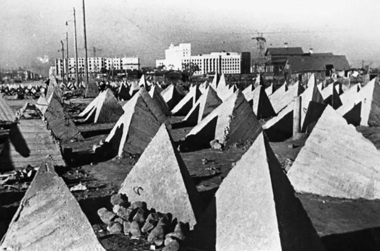 Rào chắn chống tăng trên đường cao tốc Moskovsky, khu vực Srednyaya Rogatka