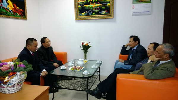 Gặp gỡ với bà con cộng đồng Ngài đại sứ đã chúc Tết và thăm hỏi tình hình cuộc sống và điều kiện làm việc tại đây. Thay mặt ban lãnh đạo TTTM Kim Sơn, ông Đặng Ngọc Tú - Chủ Tịch Hội Đồng quản trị đã báo cáo: "Hiện tại, bà con cộng đồng đã đi vào buôn bán tương đối ổn định. Mặc dù TTTM Kim Sơn ra đời không lâu nhưng ban giám đốc đã cố gắng tạo điều kiện thuận lợi nhất cho bà con buôn bán. Cơ sở hạ tầng đều đạt tiêu chuẩn của nước sở tại cho nên bà con rất hài lòng và phấn khởi."