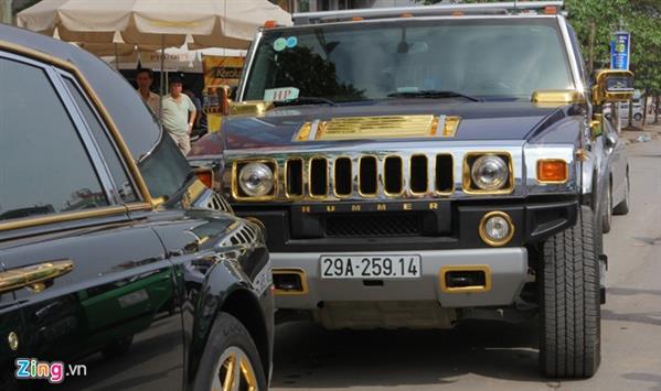 Chiếc xe sang Phantom nổi tiếng nhờ góp mặt ở nhiều sự kiện tại thủ đô thời gian gần đây trong khi đó Hummer H2 hiếm gặp hơn. Mẫu SUV hầm hố mạ vàng một số chi tiết ngoại thất. Nội thất không thay đổi.