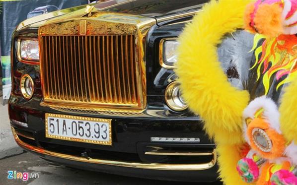 Sáng 28/4, bộ đôi xe sang Rolls-Royce Phantom và Hummer H2 nhiều chi tiết mạ vàng cùng xuất hiện ở Hà Nội. Phantom mang biển số Sài Gòn, thuộc sở hữu của một đại gia kinh doanh bất động sản. So với Hummer H2, chiếc Phantom độ công phu hơn.