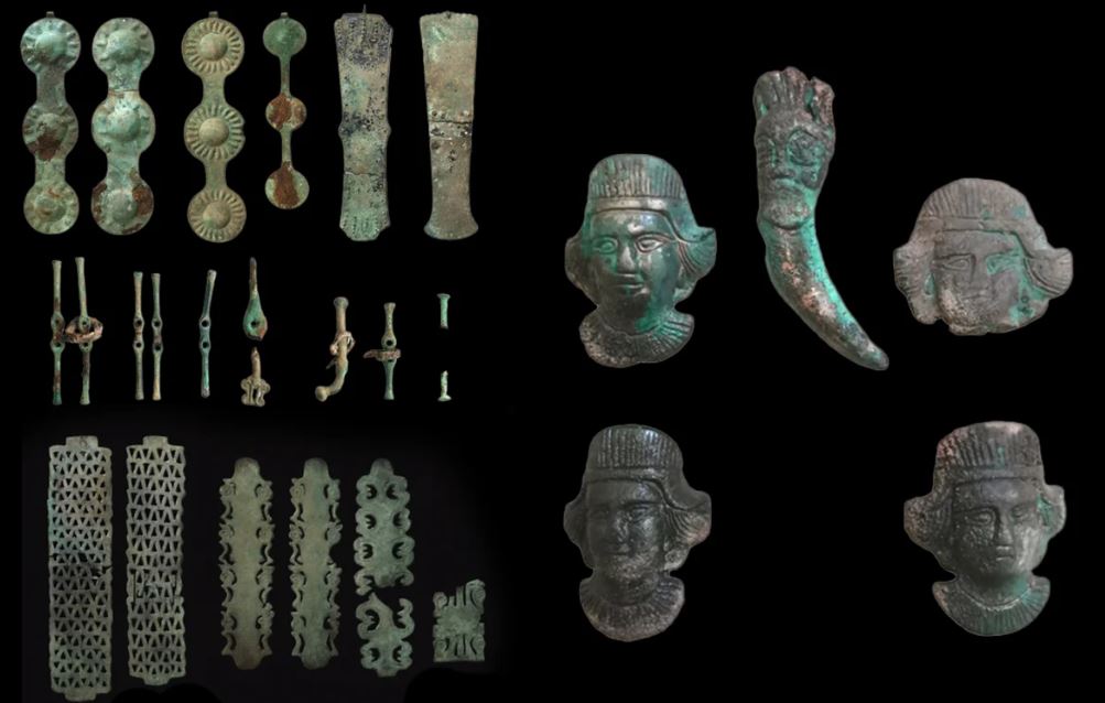 Trong số những hiện vật nổi bật có tới 17 tấm bảo vệ trán bằng đồng, 30 tấm bảng khảm