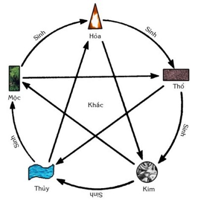 Trước tiên bạn cần biết trong phong thủy, ngũ hành Kim, Mộc, Thủy, Thổ, Hỏa là khái niệm được dùng rất nhiều. Nếu hành nào có tác dụng tốt hoặc tạo ra hành kia thì gọi là tương sinh. Ngược lại, nếu hành nào hủy diệt hoặc cản trở hành kia thì gọi là tương khắc. Ngũ hành tương sinh là: Thổ – Kim – Thủy – Mộc – Hỏa – Thổ; ngũ hành tương khắc là: Kim khắc Mộc, Thủy khắc Hỏa, Hỏa khắc Kim, Mộc khắc Thổ, Thổ khắc Thủy.