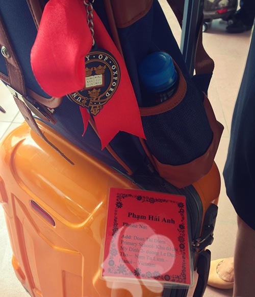 Để thuận tiện cho việc quản lý học sinh, những em bé tham gia du học hè sẽ được buộc một sợi ruy băng đỏ kèm một tờ phiếu ghi họ tên, đia chỉ trường và số điện thoại vào hành lý.