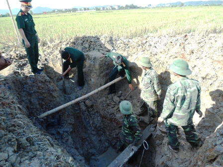 Trong lúc đi rà phá bom mìn ở cánh đồng Tàu Bay thuộc phường Hưng Dũng, TP Vinh, Nghệ An, đội rà phá bom mìn số 3 Tổng Công ty 36 - Bộ quốc phòng đã phát hiện một quả bom phá hoại nặng gần 230 kg.