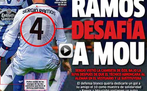 Được bố trí đá hậu vệ phải thay cho Arbeloa dính chấn thương (lần gần nhất Ramos đá hậu vệ phải là vào ngày 18/2/2012 ở trận gặp Racing), Ramos xem ra bất phục và đã có hành động đáp trả. Mặc áo số 4, nhưng ở bên trong cựu cầu thủ của Sevilla lại mặc áo có in số 10 để ngầm ủng hộ Ozil, cầu thủ đang bị Mourinho chỉ trích rất nhiều do sa sút phong độ trong suốt thời gian qua.