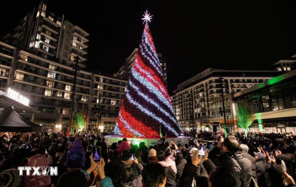 Cây thông Noel được trang hoàng rực rỡ tại Richmond, British Columbia, Canada.