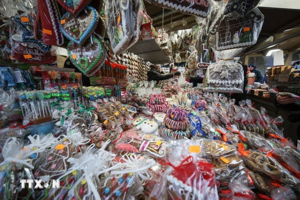 Đồ trang trí được bày bán tại chợ Giáng sinh ở Poznan, Ba Lan. (Ảnh: PAP/TTXVN)