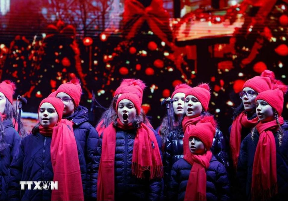 Các em nhỏ biểu diễn tại chợ Giáng sinh ở Bucharest, Romania. (Ảnh: THX/TTXVN)