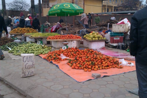 Tại một sạp bán hoa quả trên vỉa hè đường Nguyễn Sơn (Long Biên, HN), khi PV ngỏ ý muốn mua cam ngon đem đi lễ chùa, người bán hàng nhanh nhảu chỉ vào mớ cam vàng ươm bảo: "Cam Canh xịn đấy em à. Em mở hàng cho chị, chị lấy rẻ 80.000 đồng/kg thôi, mọi ngày chị đều bán 100.000 đồng/kg". Khi PV cẩm quả cam trên tay, miết nhẹ, thấy da tay có vương chút màu do quả cam để lại liền hỏi chủ hàng "Cam Canh sao nhuộm phẩm màu giống cam Trung Quốc?", thì chị này ấp úng: "Cam Canh thường có màu sắc xấu, chắc người buôn nhuôn thêm ít màu cho đẹp mắt. Chứ cam này ngọt như đường phèn. Em ăn thử đi, chị bán hàng ở đây thường xuyên, ai lại lừa lọc để mất khách".