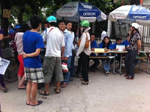 Điều lạ lùng là chuyện chèo kéo, tranh giành ấy diễn ra ngay cạnh bàn tư vấn nhà trọ miễn phí, nhà trọ giá rẻ của các sinh viên tình nguyện. Hỏi có hỗ trợ chỗ ở miễn phí không, các bạn sinh viên  nhiệt tình đáp ứng: “Chỗ bọn em có hỗ trợ chỗ ở và thậm chí ăn uống miễn phí cho thí sinh”.