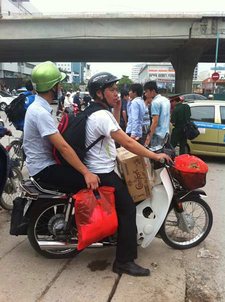 Tay xách nách mang đi thi tại bến xe Mỹ Đình