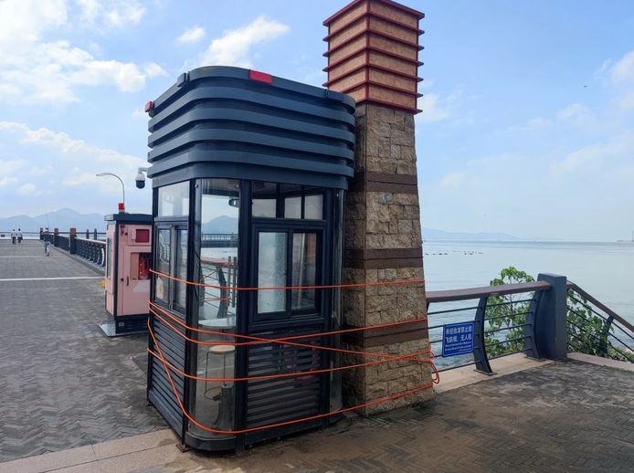 Chốt bảo vệ tại Công viên vịnh Thâm Quyến được buộc chặt để gia cố. Ảnh: The Paper
