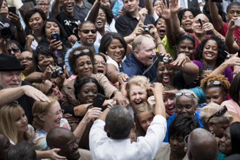 Ông Obama trong vòng tay những người ủng hộ, trong đó có nhiều người da màu và những người thuộc tầng lớp trung lưu.