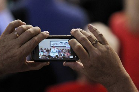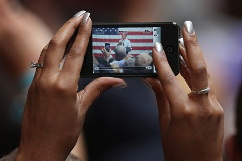 Người ủng hộ chụp ảnh ông Obama khi ông đang phát biểu tại buổi gây quỹ tranh cử ở Chicago, bang Illinois.