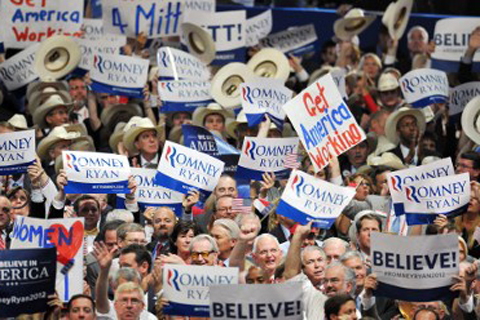Ông Romney, phó tướng Paul Ryan và phu nhân luôn tự tin phát biểu trước những người ủng hộ và chờ đợi cơ hội để thay đổi tình thế.