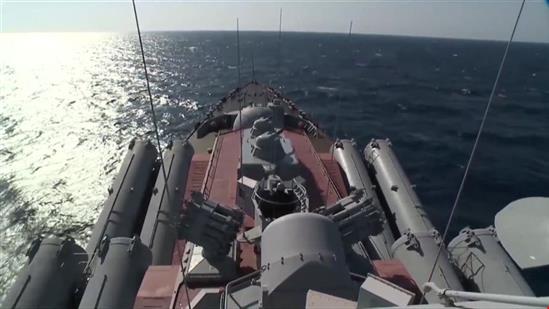 Tuần dương hạm Cận vệ “Matxcơva” ngoài khơi bờ biển Latakia.