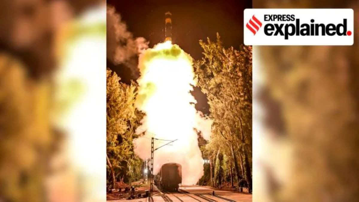 Tên lửa Agni-Prime với tầm bắn 2.000km được phóng thử từ hệ thống bệ phóng di động đặt trên đường sắt. (Ảnh: @rajnathsingh/X, PTI/indianexpress.com)