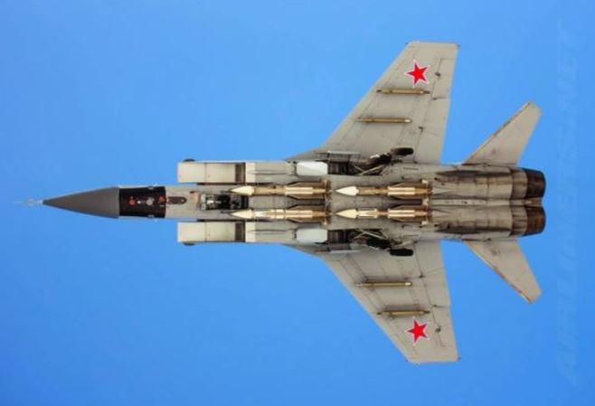 MiG-31 mang vũ khí dưới bụng và giá treo ở cánh. Ảnh: ITN