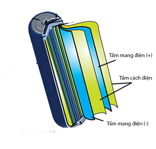 Một phần nguyên nhân đến từ cấu tạo chung của những viên pin năng lượng, cụ thể ở đây, 1 cell Pin Lithium-ion được cấu tạo bởi rất nhiều tấm mang điện tích trái dấu xếp chồng lên nhau và phân tách nhau bởi những lớp cách điện.