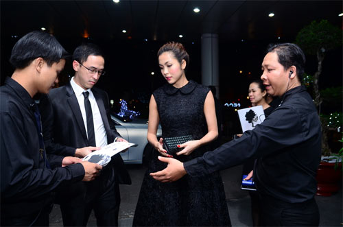 Dù là người nổi tiếng, cô và chồng vẫn bị kiểm tra vé kỹ lưỡng trước khi vào, bởi chủ nhân đêm diễn đã tuyên bố cấm cửa khách không mời.