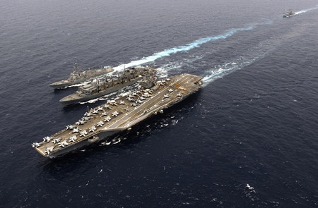 Hai đội tàu sân bay tấn công và lực lượng thuỷ quân lục chiến Mỹ qui tụ tại một khu vực tương đối nhỏ ở Tây Thái Bình Dương là hiện tượng tập trung hỏa lực bất thường.