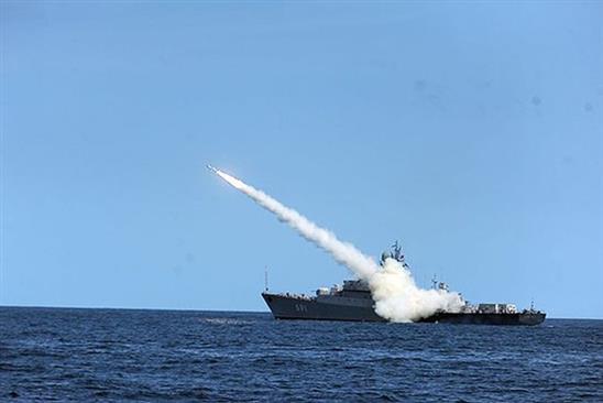 Tàu tên lửa lớp Gepard của Nga, chiếc Tatarstan phóng tên lửa Klub năm 2014- Ảnh: Hải quân Nga