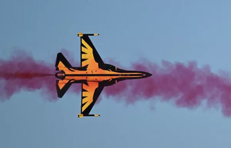Đội bay biểu diễn Không quân Hàn Quốc "Black Eagles" trên máy bay phản lực huấn luyện siêu thanh "T-50 Golden Eagle" biểu diễn tại buổi biểu diễn hàng không của Triển lãm Quốc phòng Thế giới World Defence Show (WDS-2026) ở Riyadh. © Sputnik / Pelagiya Tikhonova