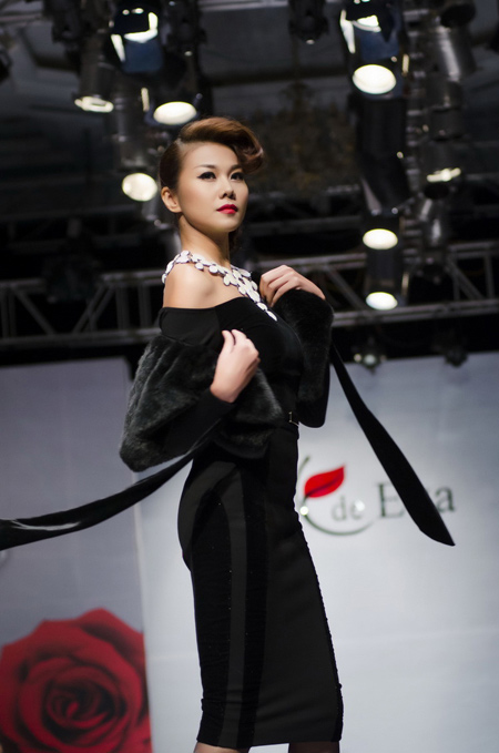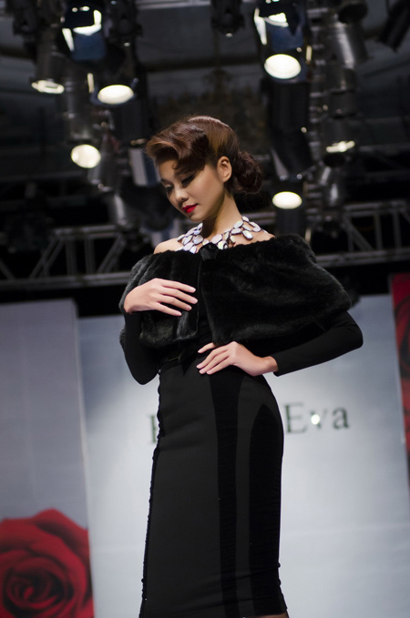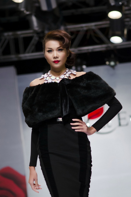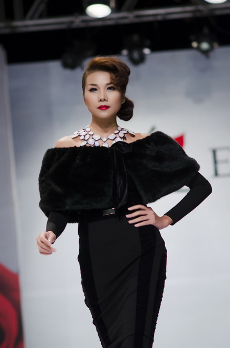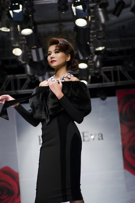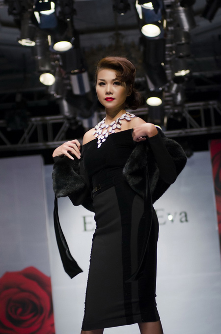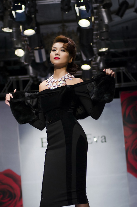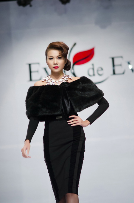 Thời gian gần đây, siêu mẫu Thanh Hằng ít khi xuất hiện trên sàn catwalk với vai trò người mẫu trình diễn. Tuy nhiên, mỗi lần xuất hiện, với phong cách thể hiện cá tính riêng, lúc nào Thanh Hằng cũng đem đến cho người xem những bất ngờ, thú vị. Tối qua, tại Eva de Eva Fashion show Fall Winter , diện thiết kế theo xu hướng Thu Đông 2012 - 2013, Thanh Hằng từ từ cởi phần phía trên của chiếc váy dài và làm chiếc khăn choàng để lộ đôi vai trần gợi cảm. Hành động thể hiện tính chuyên nghiệp của siêu mẫu thực sự ấn tượng với người xem.