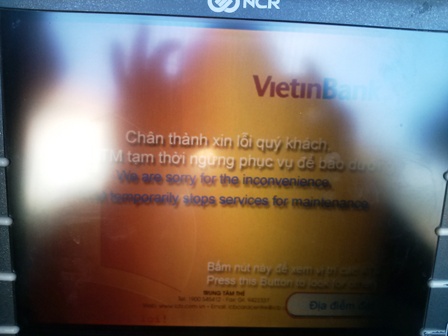 Còn máy ATM của ngân hàng Vietinbank thì báo tạm thời ngừng phục vụ, tình trạng này thường xuyên diễn ra tại ngân hàng này.