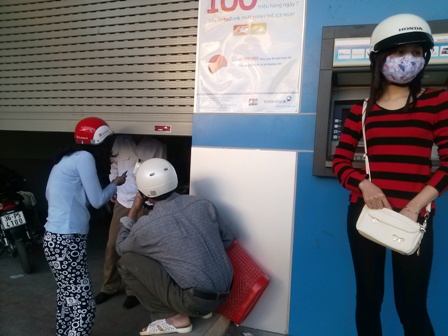 Cảnh chen lấn tại máy ATM của ngân hàng Agribank trên đường Phan Chu Trinh.