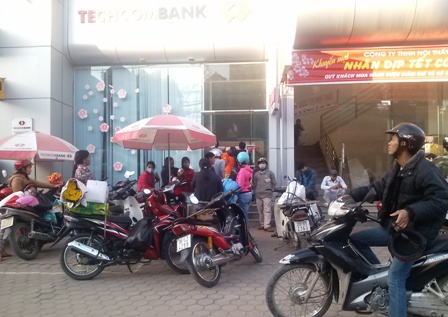 Tại ngân hàng Techcombank cũng diễn ra cảnh chen lấn nhau để rút tiền.