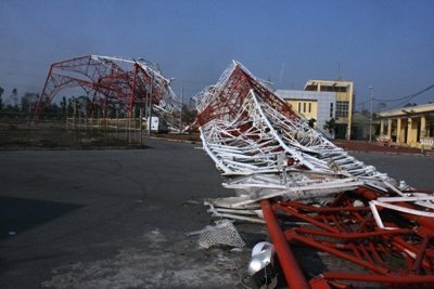 Tòa tháp ở Nam Định bị bão quật đổ vào khoảng 20 giờ 40 phút.