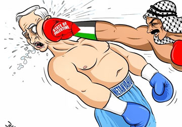 Cú nốc ao của Palestine với Thủ tướng Israel Benjamin Netanyahu. Ảnh: OSAMA HAJJAJ, trang web ABU MAHJOOB CREATIVE PRODUCTIONS
