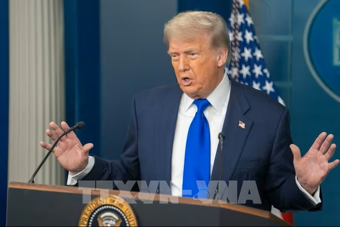 Tổng thống Mỹ Donald Trump phát biểu họp báo tại Nhà Trắng ở Washington, D.C. Ảnh: THX/TTXVN.