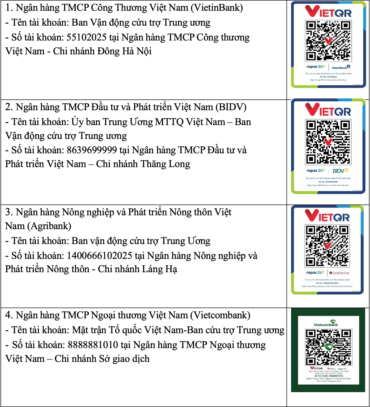 Thông tin tiếp nhận ủng hộ liên hệ qua các kênh sau: