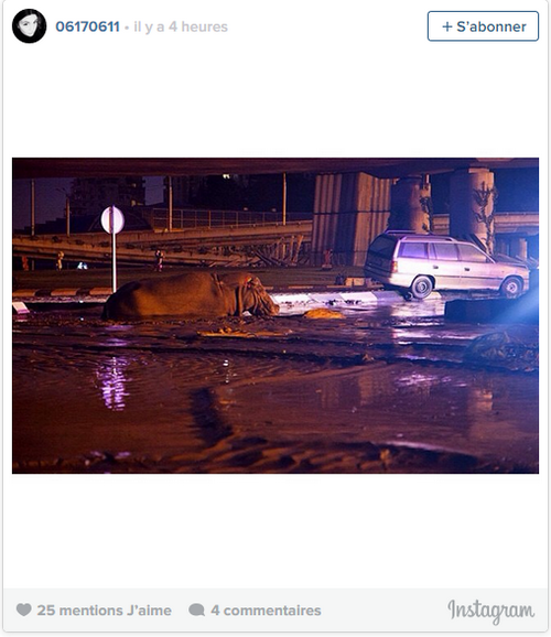 Người sử dụng mạng xã hội đăng tải hình ảnh của những con vật đào tẩu khỏi Sở thú Tbilisi. Mưa lớn nhiều giờ ở thủ đô Gruzia đã dẫn đến cảnh ngập lụt tại một số khu vực trong thành phố. Sân bãi, hầm nhà và cả tầng trệt của hàng trăm ngôi nhà, lối đi ngầm và quảng trường ngập nước.