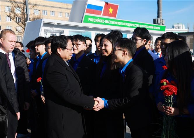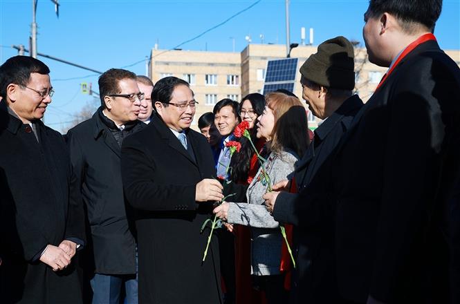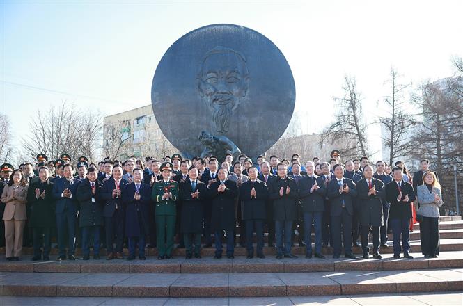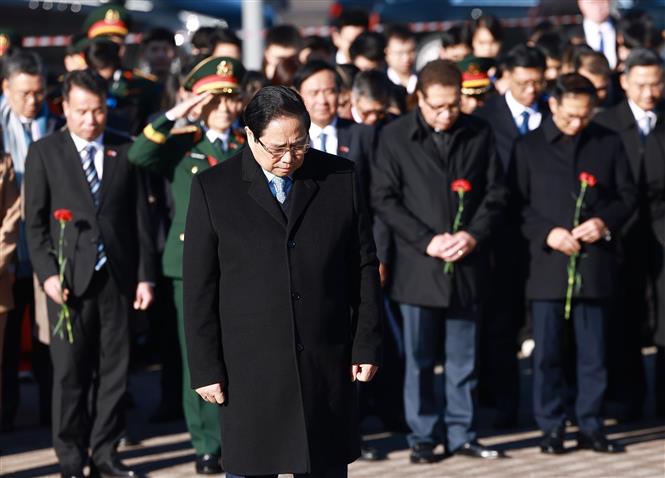 Nhân chuyến thăm chính thức Liên bang Nga, sáng 23/3/2026, giờ địa phương, Thủ tướng Phạm Minh Chính và đoàn đại biểu cấp cao Việt Nam đến dâng hoa tại Tượng đài Chủ tịch Hồ Chí Minh (Quảng trường Hồ Chí Minh) ở Thủ đô Moscow, Liên bang Nga.
