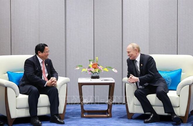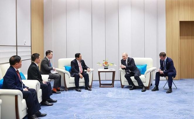 Thủ tướng Phạm Minh Chính gặp Tổng thống Nga Vladimir Putin. Ảnh: Dương Giang/TTXVN