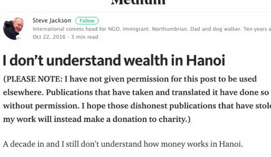 Trong một chia sẻ quan điểm cá nhân của mình, Steve Jackson (người Anh, đang làm Giám đốc dự án truyền thông số tại một tổ chức phi chính phủ ở châu Á) chia sẻ rằng, trong vòng 10 năm sống tại Việt Nam, ông vẫn chưa thể hiểu được cách tiêu tiền của người Việt.