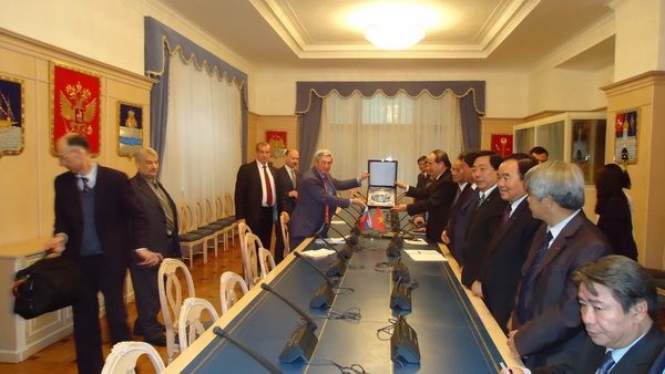 Phó CT Duma QG Nga tặng Phó Thủ tướng Nguyễn Thiện Nhân món quà lưu niệm của Nga
