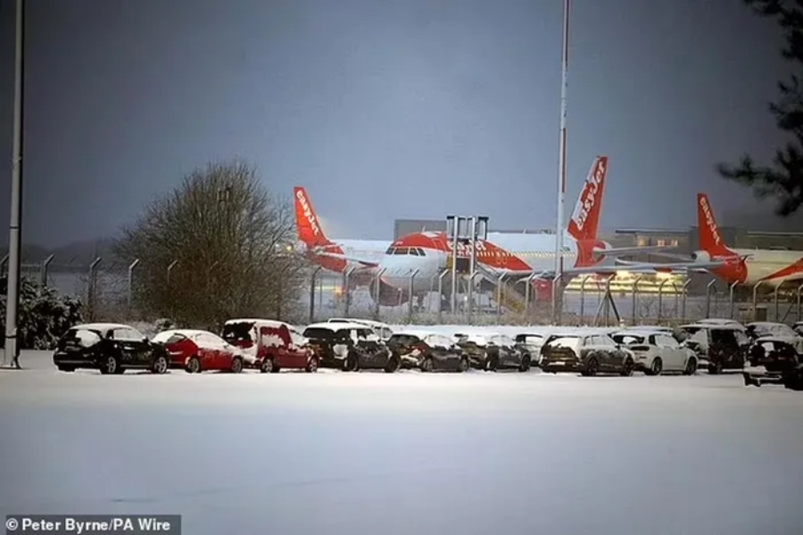 Thời tiết lạnh giá đã gây ra tình trạng hỗn loạn giao thông, không có chuyến bay nào đến hoặc đi từ các sân bay Manchester, Liverpool và Leeds Bradford trong nhiều giờ.