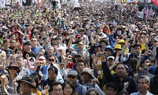 Hàng nghìn người tập trung ở thủ đô Seoul, Hàn Quốc, để yêu cầu chấm dứt hợp đồng làm việc tạm thời. Ảnh: Daily Mail.