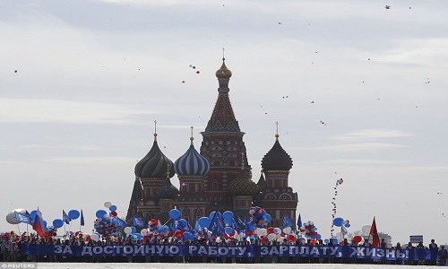 Các cuộc tuần hành mừng ngày Quốc tế Lao động cũng diễn ra tại nhiều thành phố khác trên khắp nước Nga. Ảnh: Daily Mail.