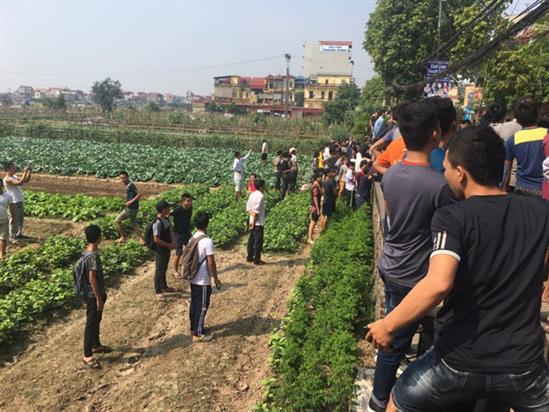 Nhiều người dân hiếu kì còn dẫm lên ruộng rau cải để xem lực lượng chức năng giải cứu con tin.