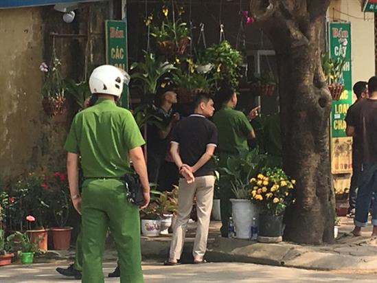 Đang ngồi bán hoa trước cửa hàng, chị H bất ngờ thấy một nam thanh niên kẹp cổ cô gái trẻ với thái độ rất manh động, hung hăng.