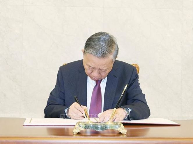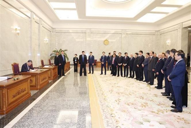 Tổng Bí thư Tô Lâm ghi sổ lưu niệm tại Cung Thái Dương ở Thủ đô Bình Nhưỡng.