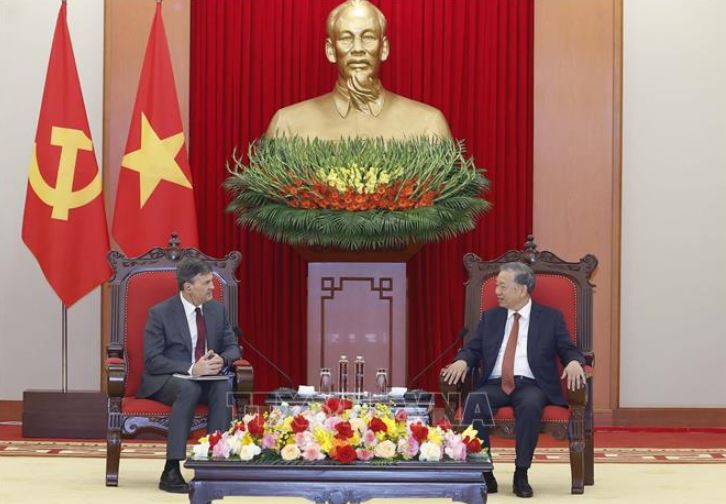 Tổng Bí thư Tô Lâm tiếp Giám đốc Học viện Tổng thống Liên Bang Nga Aleksey Komissarov.